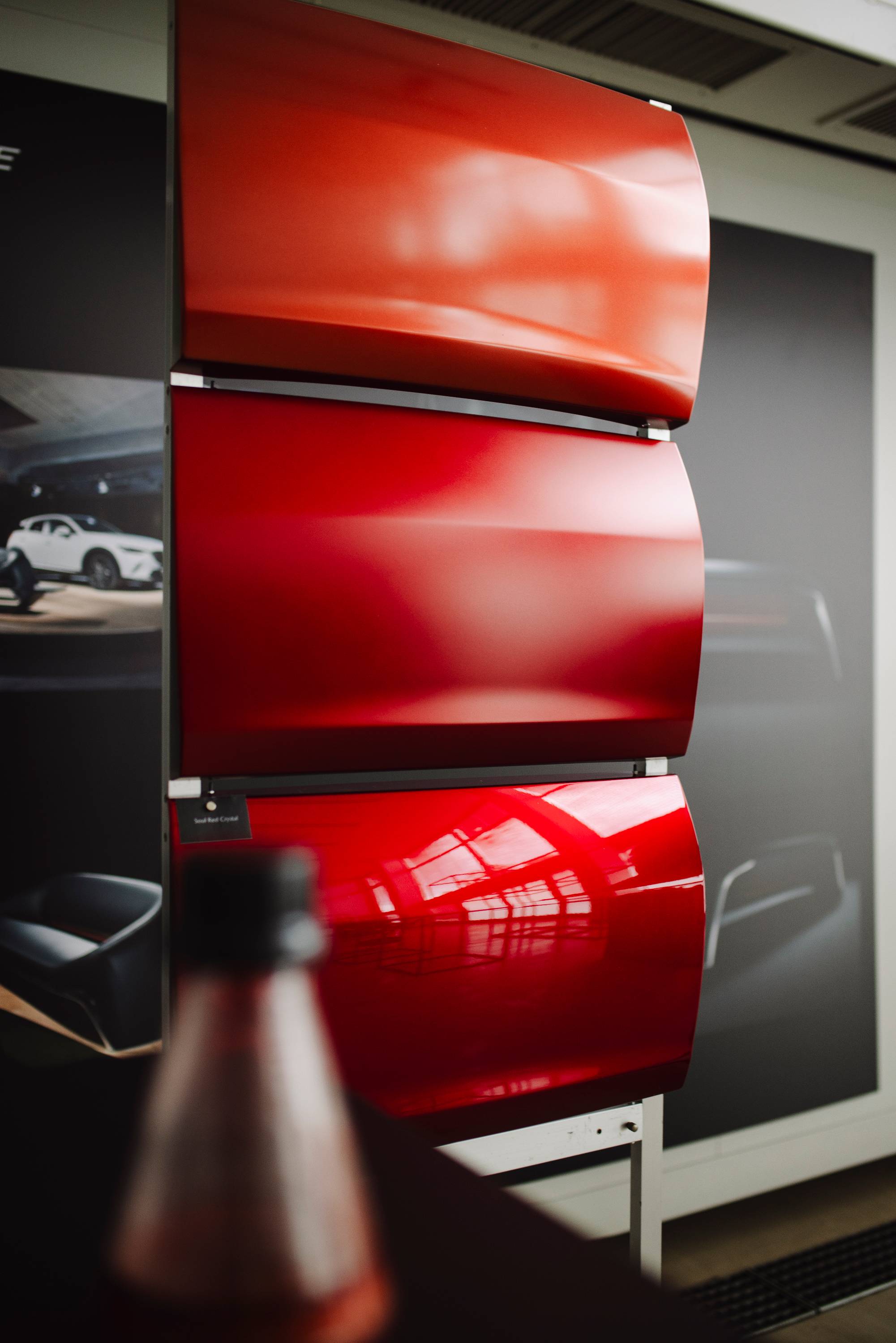 The series highlights the dialogue between automotive design and architectural aesthetics, capturing textures, geometry, and atmosphere in a cohesive visual narrative. Each image traces a red thread through the story, celebrating Mazda not just as a car manufacturer, but as a brand deeply shaped by artistry, precision, and contemporary design culture.