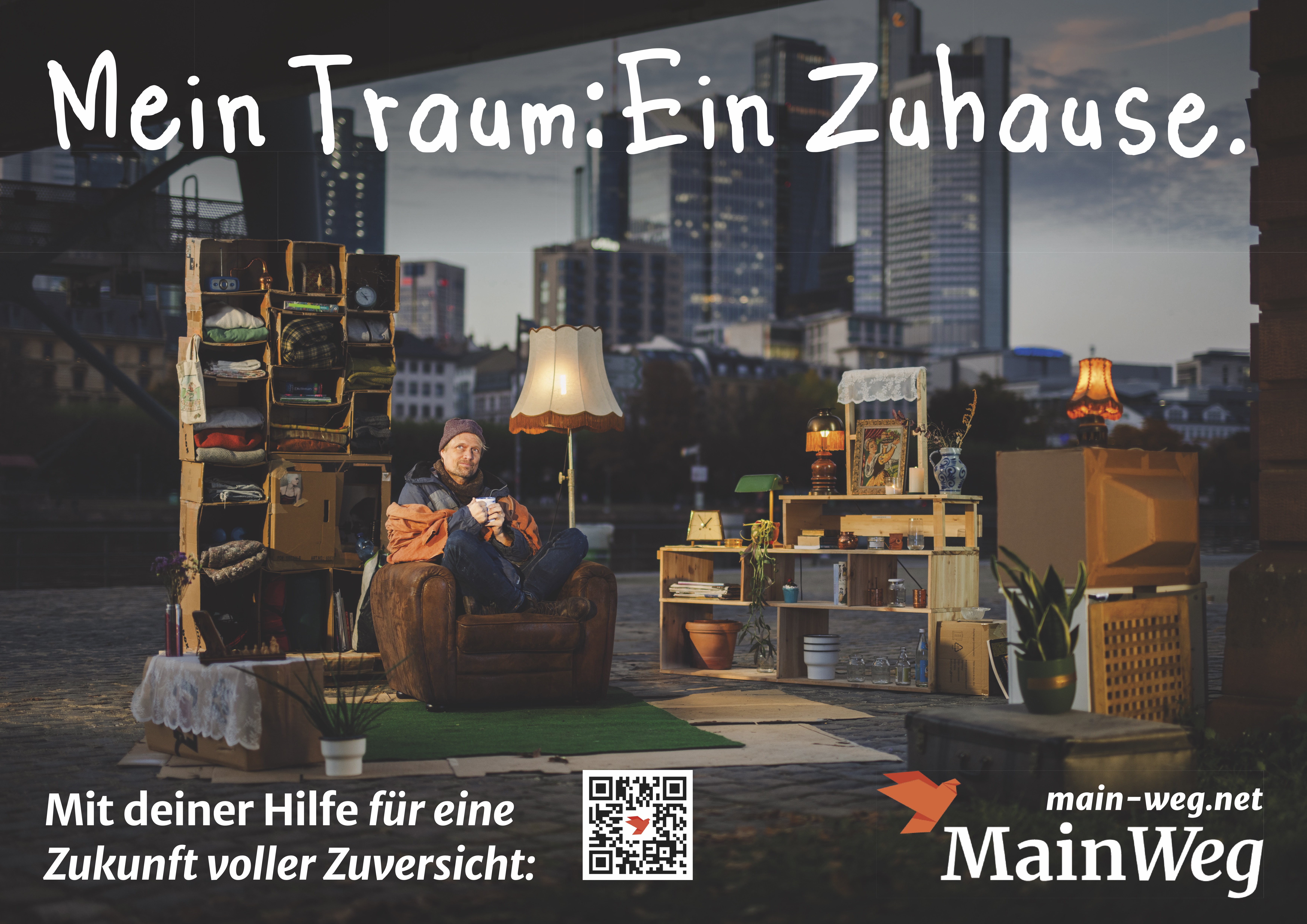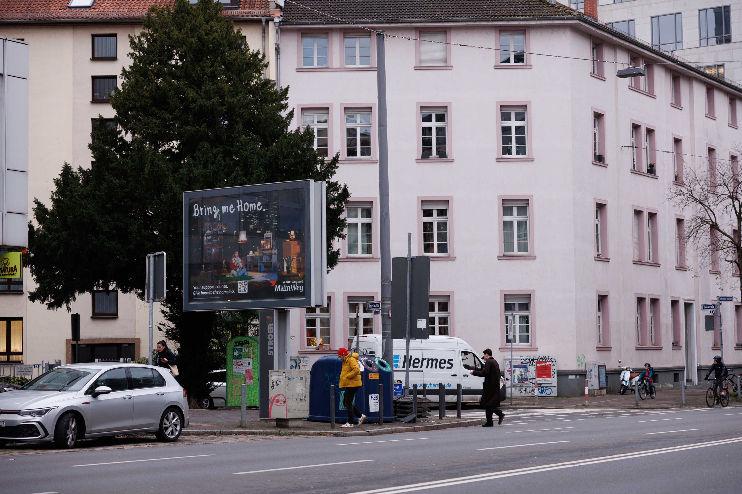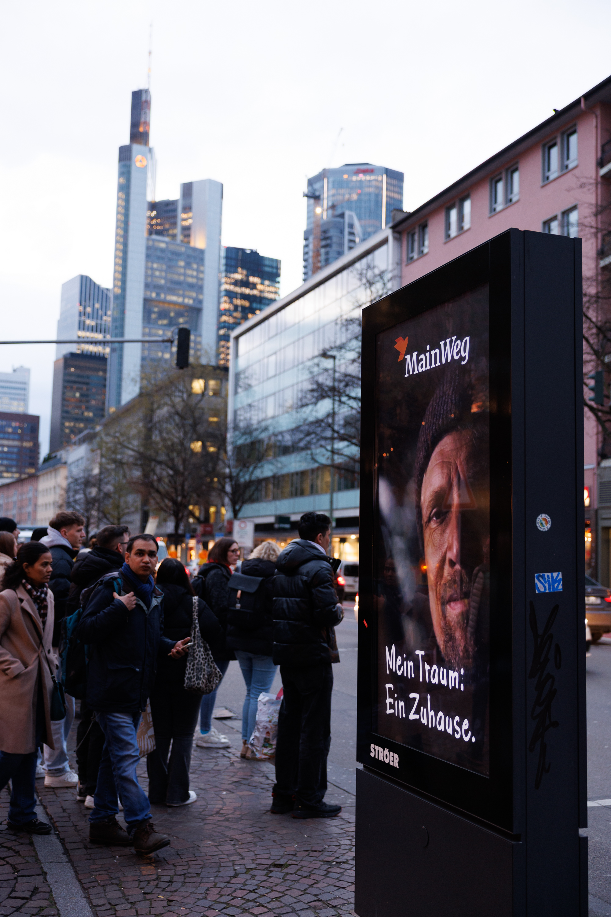 - Vom Konzept bis zum Key Visual für eine stadtweite Kampagne in Frankfurt – für eine soziale Stiftung, die sich mit dem Konzept Housing First befasst. Wir wurden beauftragt, eine OOH-Kampagne (Out-of-Home) zu konzipieren und das Key Visual innerhalb von nur zwei Wochen – von der Anfrage bis zur finalen Lieferung – umzusetzen.